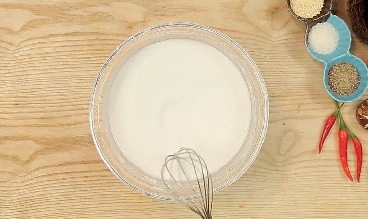 - Sau đó, để hỗn hợp bột ngâm khoảng 3 – 4 tiếng. Cứ 2 tiếng lại chắt nước trong ra và thay lượng nước mới sao cho bằng lượng nước vừa chắt. Sau khi ngâm đạt, bạn cho 1 thìa cà phê muối, 1 muỗng canh dầu ăn, trộn đều hỗn hợp bột lên.