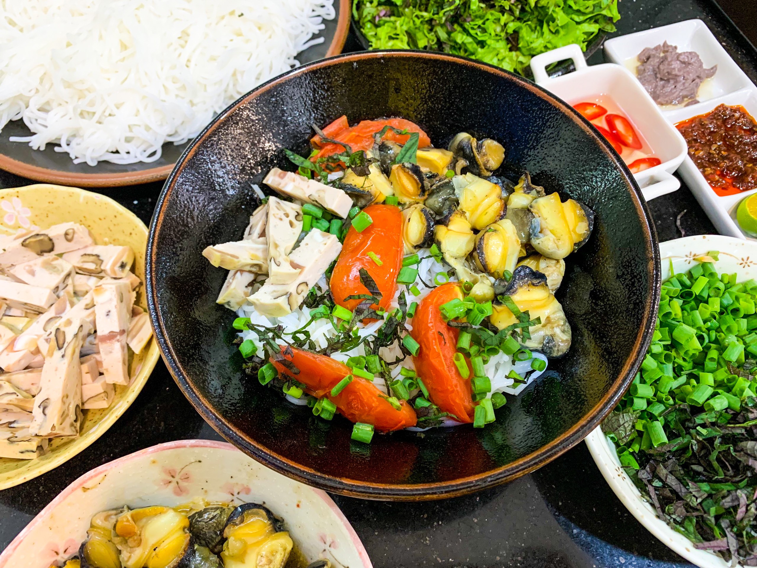 - Các loại rau sống: xà lách, rau muống chẻ, bắp chuối thái…Hành lá, tía tô, rau thơm