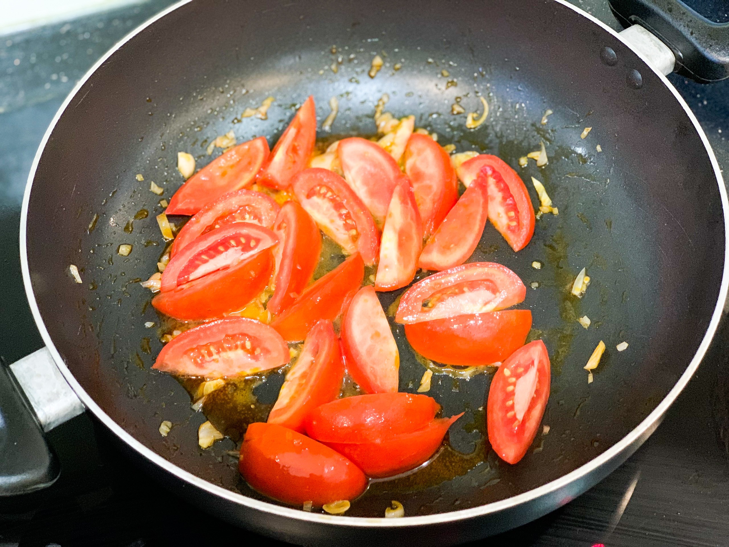 – Cà chua rửa sạch, bổ miếng cau theo chiều dọc thành 6 – 8 miếng.