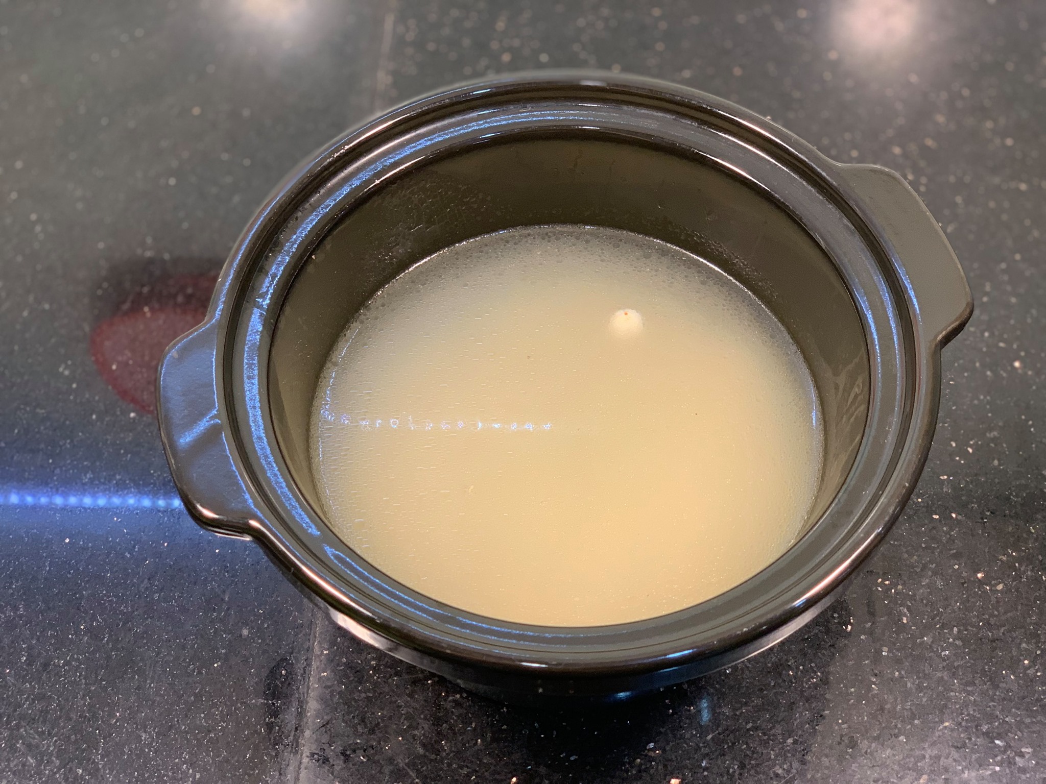 - Phần xương hầm nước. Thị lườn & đùi băm nhỏ. Ướp chút tiêu + hành tím + bột canh nếu bé trên 2 tuổi. Dưới 1 tuổi ở bước này không cần nêm thêm gì.
