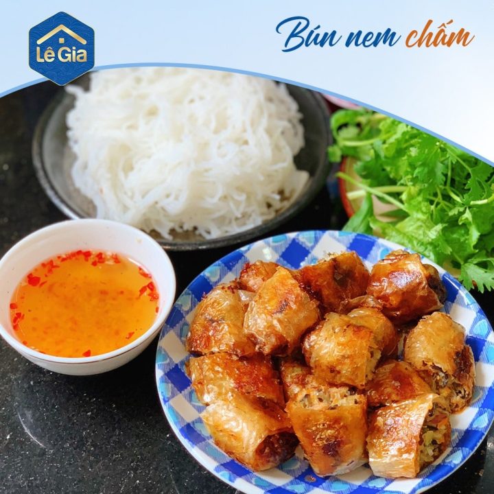 Món chính: Nem chấm nước mắm chua ngọt.