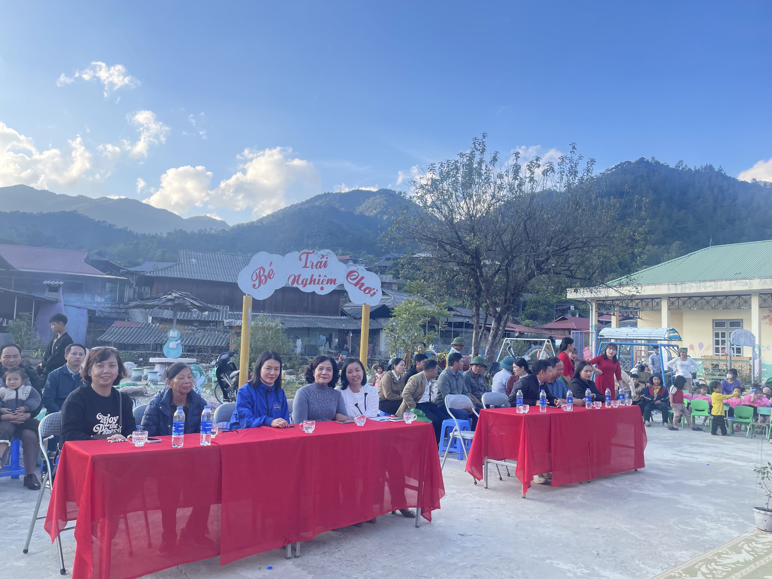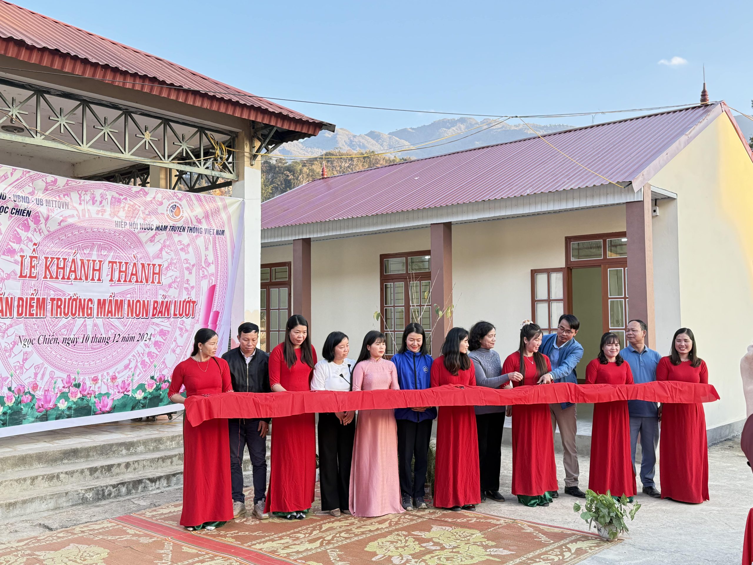 Tiến sĩ Trần Thị Dung, Lê Gia đại diện cho các thành viên của Hiệp Hội cùng với lãnh đạo địa phương (xã Ngọc Chiến) và lãnh đạo trường Mầm non Bản Lướt làm lễ để nhà ăn của điểm trường đi vào hoạt động.