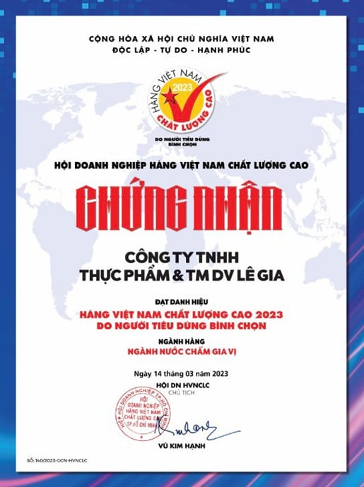 Lê Gia luôn xác định rằng chất lượng sản phẩm và sự an toàn tự nhiên chính là giá trị cốt lõi tạo nên lợi thế cạnh tranh. Trong lĩnh vực sản xuất thực phẩm, đặc biệt là sản xuất thực phẩm không chứa phụ gia hay chất bảo quản, khó tránh khỏi những thách thức. Tuy nhiên, với tinh thần cầu thị, Lê Gia không ngừng nỗ lực cải tiến mỗi ngày để mang lại giá trị tốt nhất cho người tiêu dùng. Dưới đây là tổng hợp những chứng nhận uy tín mà Lê Gia đã đạt được, minh chứng cho chất lượng và sự cam kết bền vững của thương hiệu.