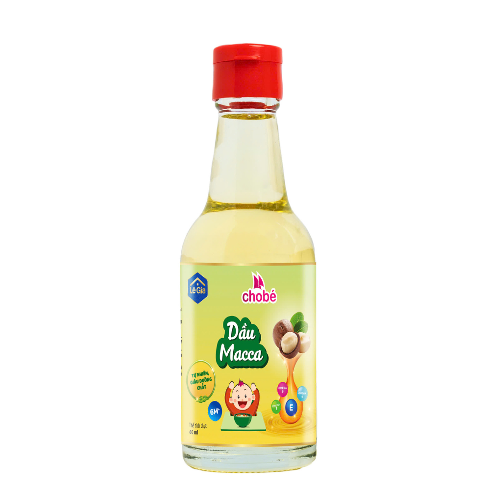 Dầu macca: Dầu macca chứa nhiều axit béo không bão hòa, giúp cung cấp năng lượng và hỗ trợ sự phát triển của tế bào não. Đây là loại dầu rất dễ tiêu hóa và thích hợp cho bé trong giai đoạn ăn dặm.