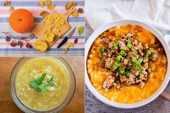 Khi nấu cháo bí đỏ, mẹ có thể cho một chút dầu oliu hoặc bơ, như vậy, hương vị cháo sẽ thơm ngon hơn rất nhiều.