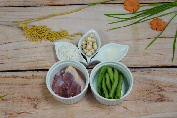 Cách làm: Thịt heo và đậu xay nhuyễn. Đối với xương thì ninh lấy nước dùng để nấu cùng gạo. Sau khi gạo được nấu thành cháo trắng đặc, cho thịt heo và đậu xay nhuyễn vào nấu khoảng 2 phút, nêm gia vị vừa miệng và tắt bếp.