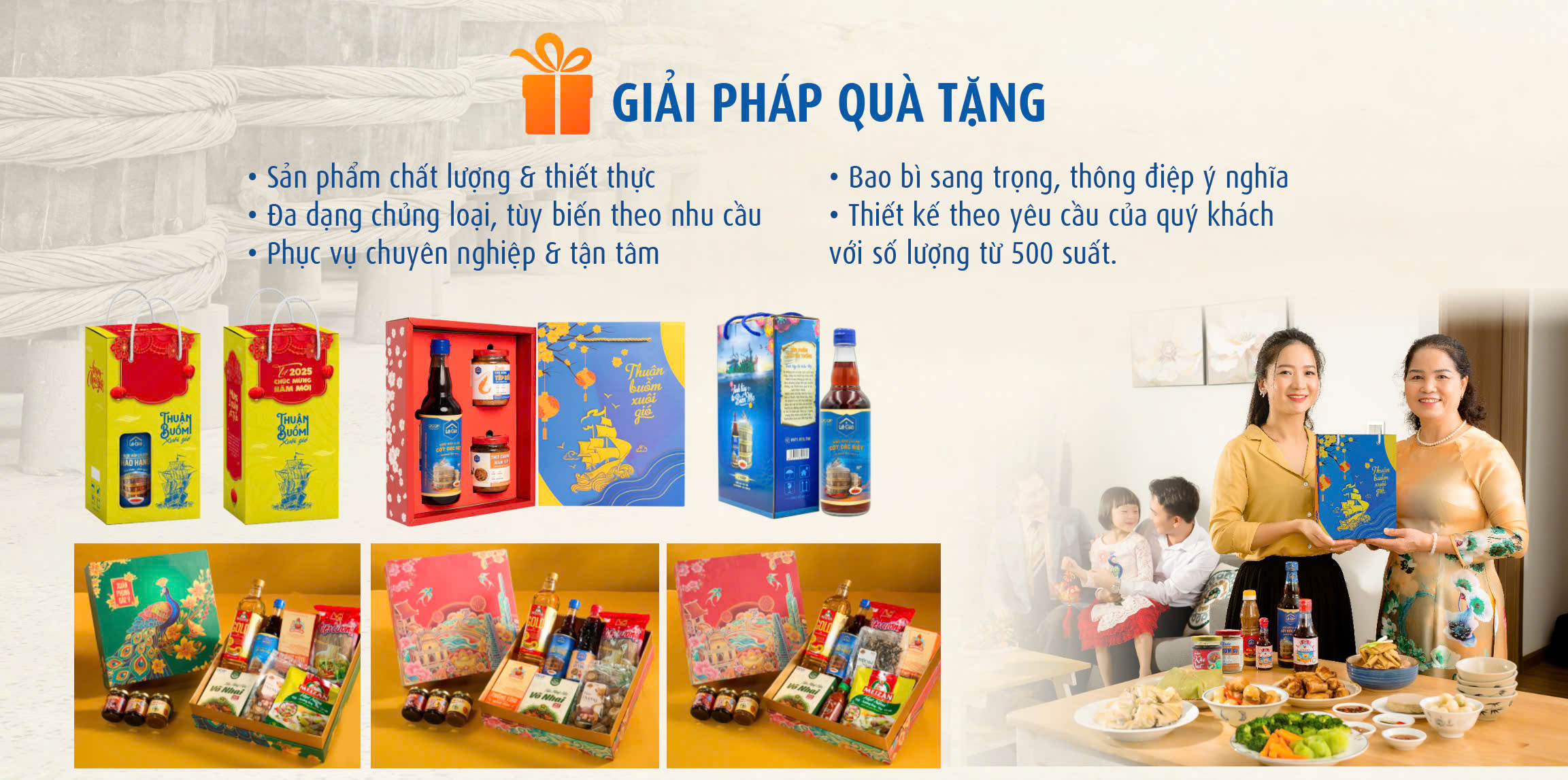 Những sản phẩm được chắt lọc tinh túy từ biển mẹ, với sự sự đầu tư trong thiết kế bao bì đã tạo nên những sản phẩm quà tặng thiết thực, độc đáo và sang trọng. Không chỉ là món quà phù hợp trao tặng những người trân quý vào dịp quan trọng, lễ tế mà còn là tinh hoa văn hóa ẩm thực của cha ông, đồng hành cùng bữa cơm an lành của người Việt.