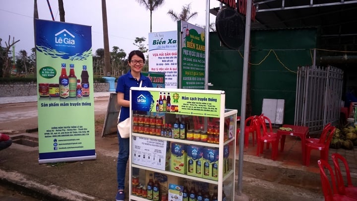 Mùa hè 2016 tại các nhà hàng ở khu du lịch biển Hải Tiến- Hoằng Hóa – Thanh Hóa. Hình ảnh cặp vợ chồng – gày gò, đôi cặp kính cận to, chồng đi giày công trường, vợ đi giày bata, mặc áo xanh có hình ngôi nhà (Lê Gia), lúc nào cũng cầm chai mắm với nụ cười trên môi, đến từng mâm cơm để mời mọi người dùng thử là hình ảnh dễ bắt gặp trong suốt 3 tháng hè.