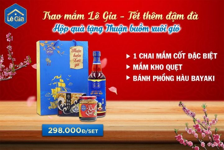 01 chai nước mắm Lê Gia nguyên cốt, ủ từ cá cơm với muối hạt trong thùng gỗ với thời gian 2 năm, mùi thơm dịu, vị đậm đà, kết hợp với 01 mắm Kho quẹt phù hợp với các món ăn chống ngán (rau củ, xôi, cơm…) ngày tết và vị giòn rụm, thơm ngon và giàu dinh dưỡng từ bánh Phồng Hàu Bayaki là món quà cả nhà ai cũng cần dùng trong dịp tết là một gợi ý không thể bỏ qua khi lựa chọn quà biếu tặng trong mỗi dịp lễ tết.